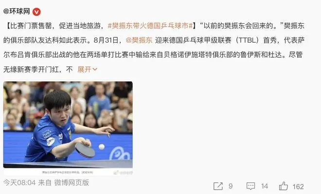 柏林洪堡大学体育经济研究所评估认为,樊振东的明星效应为德甲联赛带来约800万欧元的直接经济收益。其社交媒体互动量在参赛期间增长320万次。