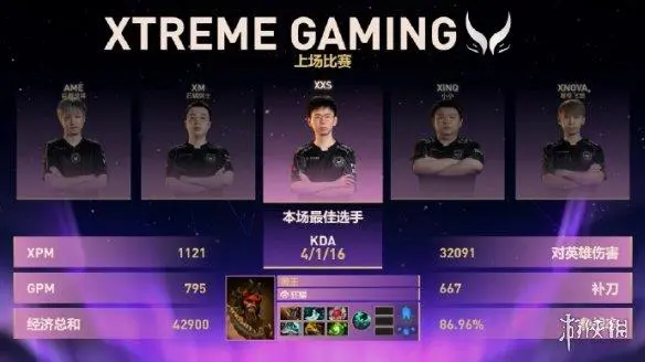 XG战队在首局对阵Tundra的比赛中开局不利,前期经济落后约3000金币。转折点出现在第28分钟,XG通过莲花球道具反制配合巨魔战将大招实现团战逆转,最终耗时42分钟拿下首局胜利。