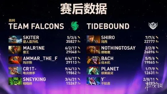 次局Tidebound在BP阶段被对手针对,三号位英雄池受限被迫选择非版本强势英雄。Falcons双辅助组合全场游走成功率高达78%,最终用时31分钟结束比赛,将Tidebound送入败者组。