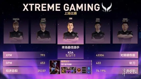 XG战队在首局对阵Tundra的比赛中开局不利,前期经济落后约3000金币。转折点出现在第28分钟,XG通过莲花球道具反制配合巨魔战将大招实现团战逆转,最终耗时42分钟拿下首局胜利。