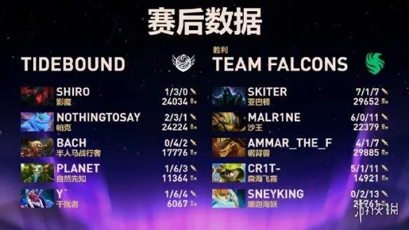 Tidebound战队在与Falcons的首局较量中,前15分钟通过辅助游走取得5个人头优势。但在第22分钟肉山团战中,核心选手走位失误导致团灭,Falcons顺势控下二代肉山完成翻盘。