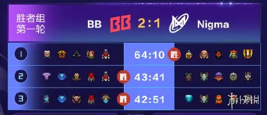 其他赛况方面,欧洲战队Pvision以2-0击败南美队伍Heroic,独联体赛区BB战队经过三局鏖战2-1战胜中东战队Nigma。根据赛事数据统计,淘汰赛首日平均比赛时长为37分钟,较小组赛缩短约8分钟。