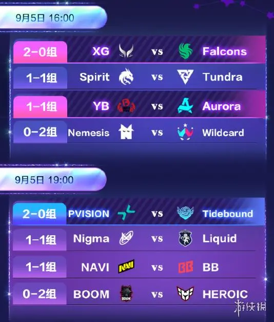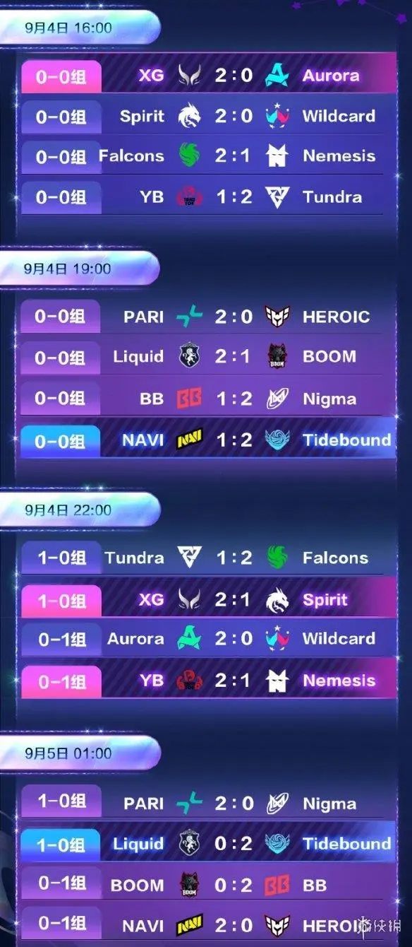 根据赛事安排,9月5日将进行瑞士轮第三、第四轮对决。北京时间16:00,XG将迎战Falcons,YB对阵Aurora;19:00的焦点战中,Tidebound将与PVISION展开2-0组较量。瑞士轮赛制规定,各战队需通过五轮比赛确定最终排名,同分队伍将进行直接对抗。