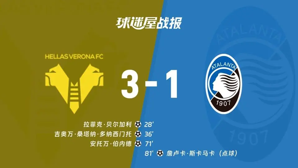 当终场哨声响起时,马可西球场记分牌定格在3-1的比分,这个结果让所有赛前预测都成了笑话。维罗纳用教科书般的防守反击战术,给控球率64%的亚特兰大上了生动一课。比赛第23分钟,摩斯奎拉精准的直塞找到突入禁区的贝尔加利,后者冷静推射破门,为这场以弱胜强的战役定下基调。