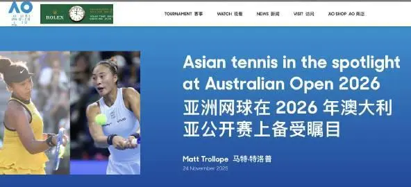 与此同时,澳大利亚网球公开赛官方近日发布2026赛季宣传资料,郑钦文与日本名将大坂直美共同出现在亚洲选手专题海报中。澳网官方在介绍中强调,郑钦文已成为新一代亚洲网球的领军人物。